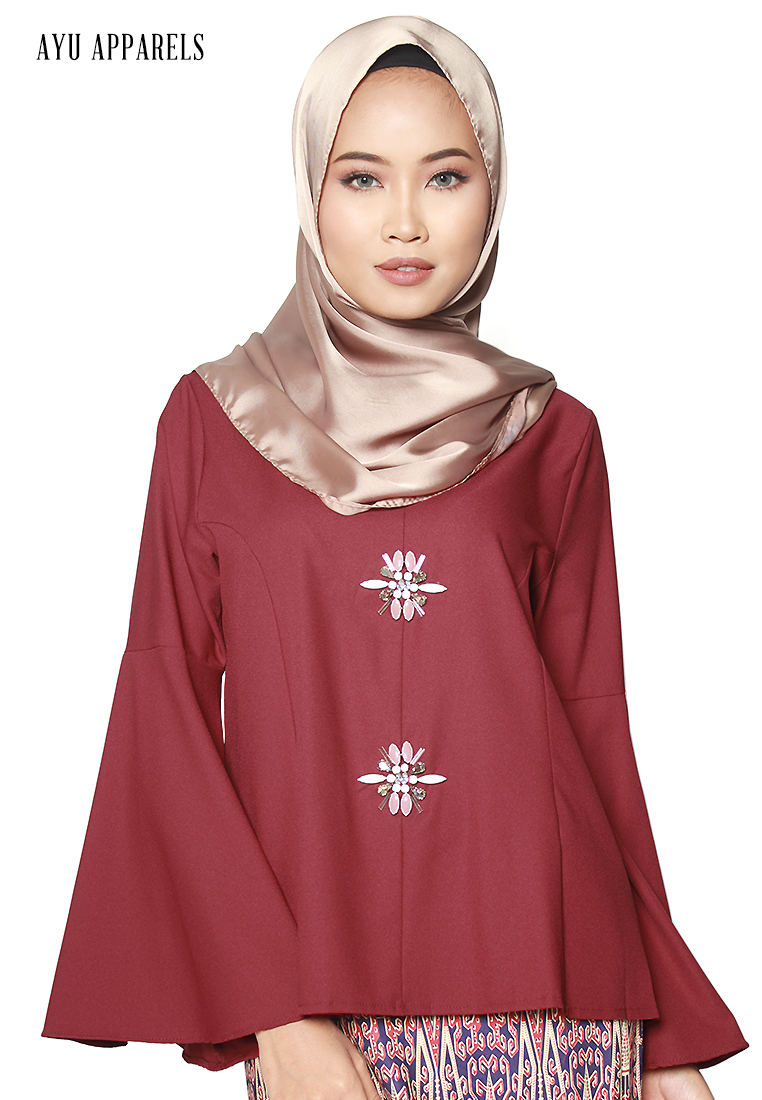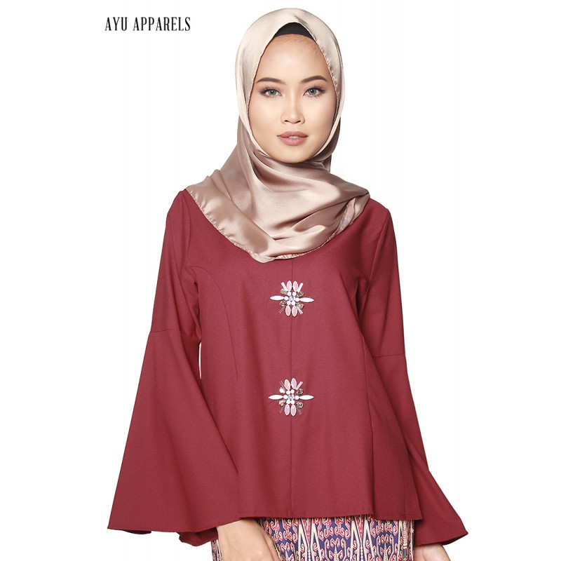 Gem Flare Sleeve Blouse Dark Red
